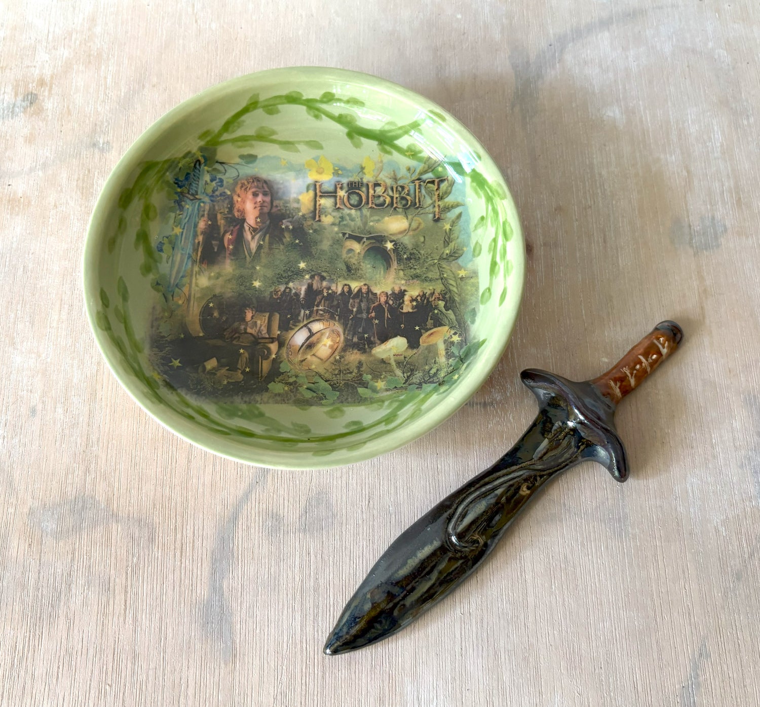 Millie's Pottery The Hobbit Green Trinket Dish and Sword Gift Set
